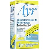 Ayr Saline Nasal Rinse Kit Soothing Sinus Wash, 50 Count Saline Nasal Rinse Mixture Packets Plus Applicator Bottle