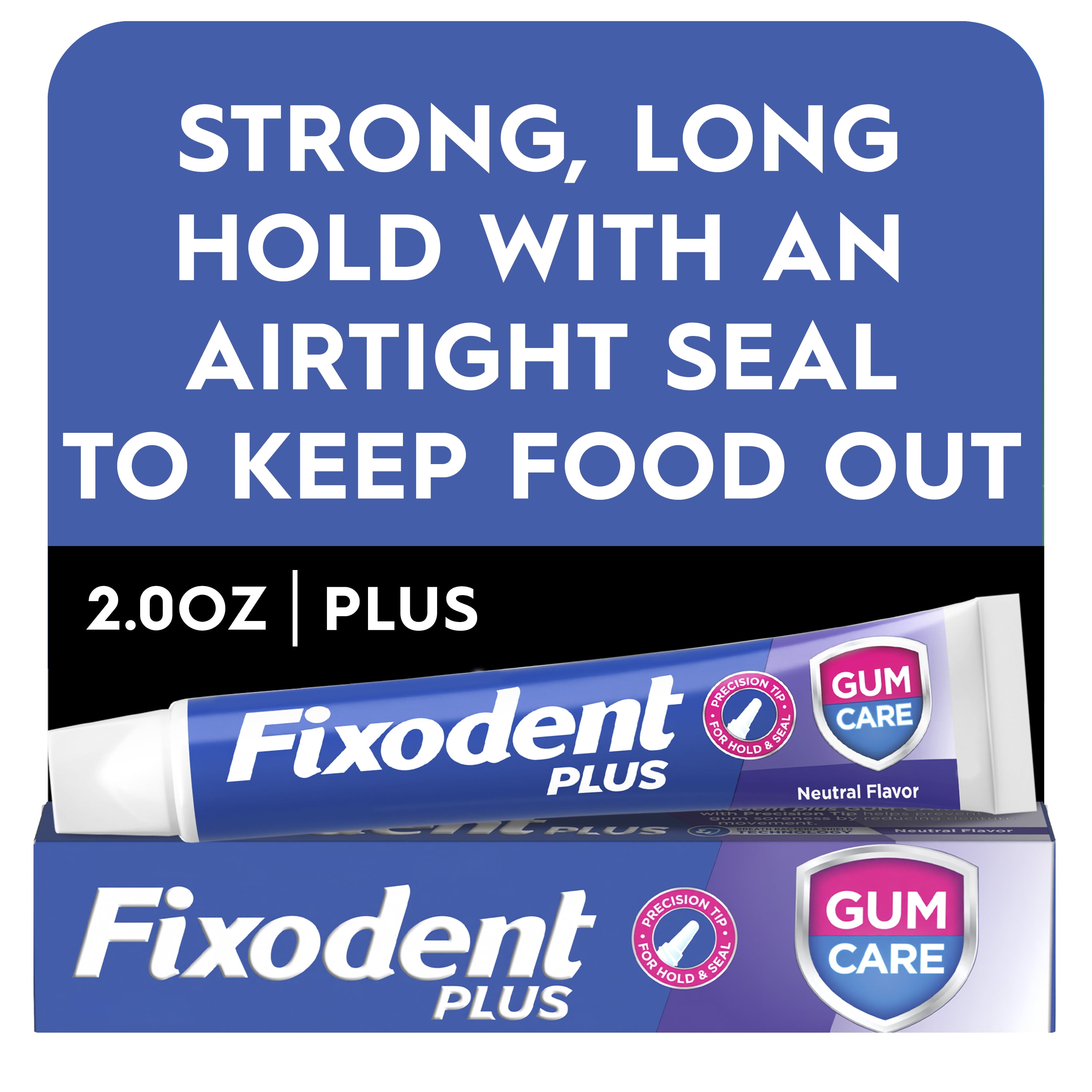 Keep your gums comfortable and dentures in place with Fixodent Plus Gum Care. Our advanced formula offers a strong, all-day hold to minimize movements that could otherwise result in gum soreness and discomfort. This dependable adhesive ensures a hold that rivals the strength of natural teeth, even when tackling challenging foods.*From dawn to dusk, it keeps your dentures firmly in place, creating a tight seal that safeguards against bothersome food particles, allowing you to eat with confidence. The precision tip nozzle offers you precise control, allowing you to apply the right amount exactly where you need it. The Breath Bacteria Shield Technology eradicates germs beneath dentures to help prevent bad breath. Try the #1 dentist recommended brand and experience life — not dentures. *vs no adhesive * You will receive (1) 2.0oz tube of Fixodent Plus Gum Care Denture Adhesive Cream * Strong Hold to Prevent Gum Soreness and Irritation * #1 Dentist Recommended Brand* *Among dentists that recommend brands of adhesive * Powerful Seal Helps Prevent Food from Getting Between Dentures and Gums * Prevents Bad Breath with Breath Bacteria Shield Technology * ADA Accepted American Dental Association * Precision Tip for Hold and Seal, Continuous Application, and Continuous Adhesive Line * For more support and information about dentures, proper use of adhesives, zinc and other product ingredients, or any other questions or comments, go to www.dentureliving.com or call 1-800-214-8871