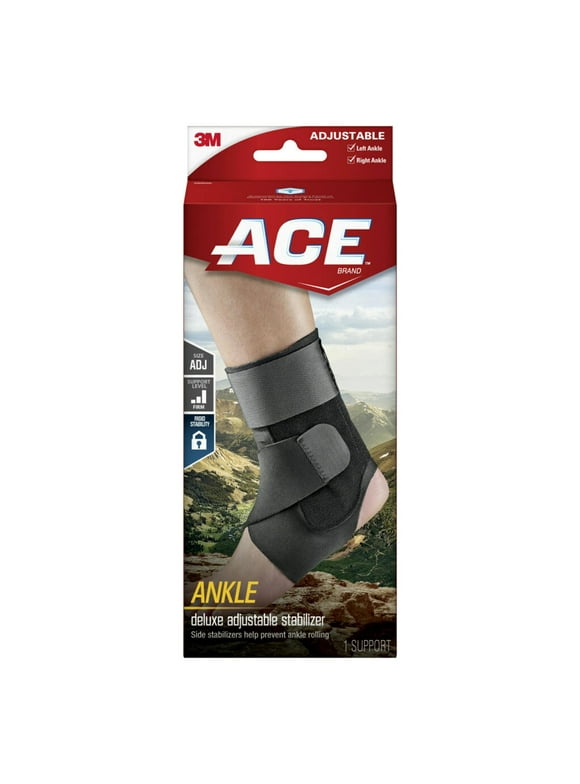 PRODUCT DESCRIPTION ACE Brand Deluxe Adjustable Ankle Stabilizer provides firm stabilizing support for weak, injured or painful joints. Built tough with reinforced stabilizers, this durable ankle brace helps limit lateral motion to prevent ankle rolling. Adjustable straps on this ankle stabilizer brace offer customizable ankle compression, support and fit, no matter how active you are. Made of breathable material, this ankle brace allows air to circulate and helps keep skin cool and dry. You can wear this ACE Brand ankle stabilizer on either your left ankle or right ankle. One size fits most. For everyday comfort, reach for the support of this ankle stabilizer. Trusted since 1918, ACE Brand guarantees its ankle braces to be of the highest quality. ACE Brand products are supported by our expert panel of engineers and medical professionals. With ACE Brand, you can keep moving forward. MANUFACTURER CONTACT INFORMATION Call to talk to a live ACE™ Brand customer service representative from 8AM - 4:30PM CST Monday - Friday