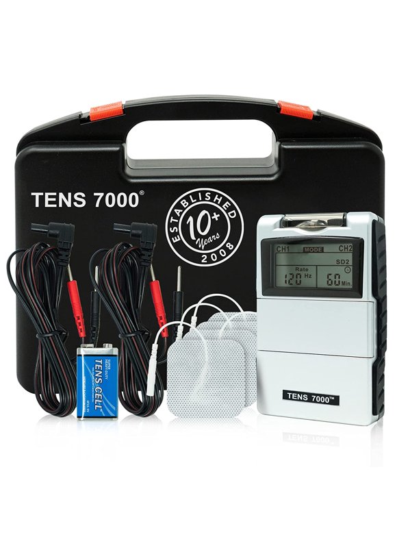 PRODUCT DESCRIPTION The Roscoe Medical Dual Channel TENS Unit OTC Edition is an exact combination of our TENS 7000 and EMS 7500, which gives the user the choice of five Modes of TENS and two Modes of EMS. Features include, dual channels, seven modes, timer, patient compliance meter, new stronger 100 mA output, safety amplitude cover, sturdy metal belt clip and rubber side railings for maximum handling. Use the tens unit as an electric massager pain relief device and then use the EMS side for muscle rehab. There are many uses for our device including neuropathy pain relief for feet, nerve pain relief, back relief, neck pain, or as just a muscle stimulator for pain relief. From the makers of the TENS 7000 2nd Edition Digital TENS unit with accessories and TENS 3000. Comes With A Hard Carry Case. The Roscoe Medical 2-channel TENS EMS unit comes with a protective case to keep your new TENS device safe. The inside of the case is lined with protective foam and includes a section for the Roscoe Medical TENS EMS device, a section to carry your lead wires/electrode pads, and a special section to carry an extra battery. Great for those who travel a lot and need a portable TENS unit, electronic pulse massager, or electric shop therapy for muscles. Get your pain under control now with this TENS device and physical therapy equipment for your pain. MANUFACTURER CONTACT INFORMATION 1-Year warranty with technical support. TENS units are complex electrical devices. We have a dedicated Consumer Therapy Support team that can help troubleshoot, answer your TENS related questions, and get you back up and running. They can even do warranty replacements if needed. I encourage you to give our Consumer Therapy Support Team a call at 800.871.7858 (x640 or x606) should you need help with your new TENS device.