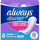 ![]() Amazon | Always Discreet Boutique Adult Incontinence & Postpartum Pads For Women, Size 4, Moderate Absorbency, Regular Length, 48 Count x 3 Packs (144 Count total) (Packaging May Vary) | $44.99 | View![]() |