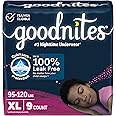 Help your kids wake up every morning feeling awesome with Goodnites Nighttime Bedwetting Underwear, the #1 bedwetting underwear*. For protection where girls need it most, these overnight underwear are made with Quicksorb Protection to provide up to 100% leak-free nights no matter how your child sleeps. Goodnites Girls’ Bedwetting Underwear features a new and improved gap-free fit around the legs*** for comfortable overnight protection. Not only that, but Goodnites Nighttime Underwear for Girls holds 3 water bottles**. Unlike potty training pants, Goodnites overnight bedwetting underwear discreetly absorb odor and offer 40% more protection vs. the leading training pant. Plus, these disposable bedwetting underwear are hypoallergenic and are free of added fragrances and elemental chlorine bleaching. Goodnites Girls' Bedwetting Underwear comes with Disney designs and offer more sizes for a comfortable, tailored fit up to 140+ lbs. Goodnites are available in Size XS (28-43 lbs), Size S/M (43-68 lbs), Size L (68-95 lbs) and Size XL (95-140+ lbs). Goodnites nighttime products are FSA/HSA-eligible in the US. (*Youth Pant category share data) (**Across all offered sizes, among national brands. Three 8 oz. water bottles, 24 oz. total) (***vs. previous Goodnites) * Goodnites Girls' Nighttime Bedwetting Underwear: 9 overnight underwear for girls, size extra large; fits children 95-140+ lbs * The #1 Bedwetting Underwear* (*Youth Pant category share data) * Each overnight underwear features Quicksorb Protection provides up to 100% leak-free nights no matter how your child sleeps * Goodnites Bedwetting Underwear for Girls’ holds three water bottles** (**Across all offered sizes, among national brands. Three 8 oz. water bottles, 24 oz. total) * Gap-Free Fit: Our Goodnites Girls' Underwear for Bedwetting boasts an improved gap-free fit around the legs*** (***vs. previous Goodnites) * Free of harsh ingredients and dermatologist-tested hypoallergenic * Goodnites nighttime products are FSA/HSA-eligible in the US