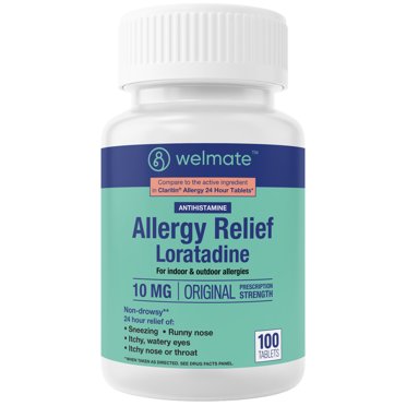 Major Non-Drowsy Allergy Relief Loratadine 10 mg - 100 Tablets: Compare to the active ingredient in leading brand antihistamines. Loratadine 10 mg / Antihistamine - 100 tablets for indoor and outdoor allergies; Non-drowsy allergy relief from sneezing, runny nose, itchy, watery eyes, throat & nose. GLUTEN-FREE. Temporarily relieves these symptoms due to hay fever or other upper respiratory allergies: Runny nose, Itchy, watery eyes, Sneezing, Itching of the nose or throat.