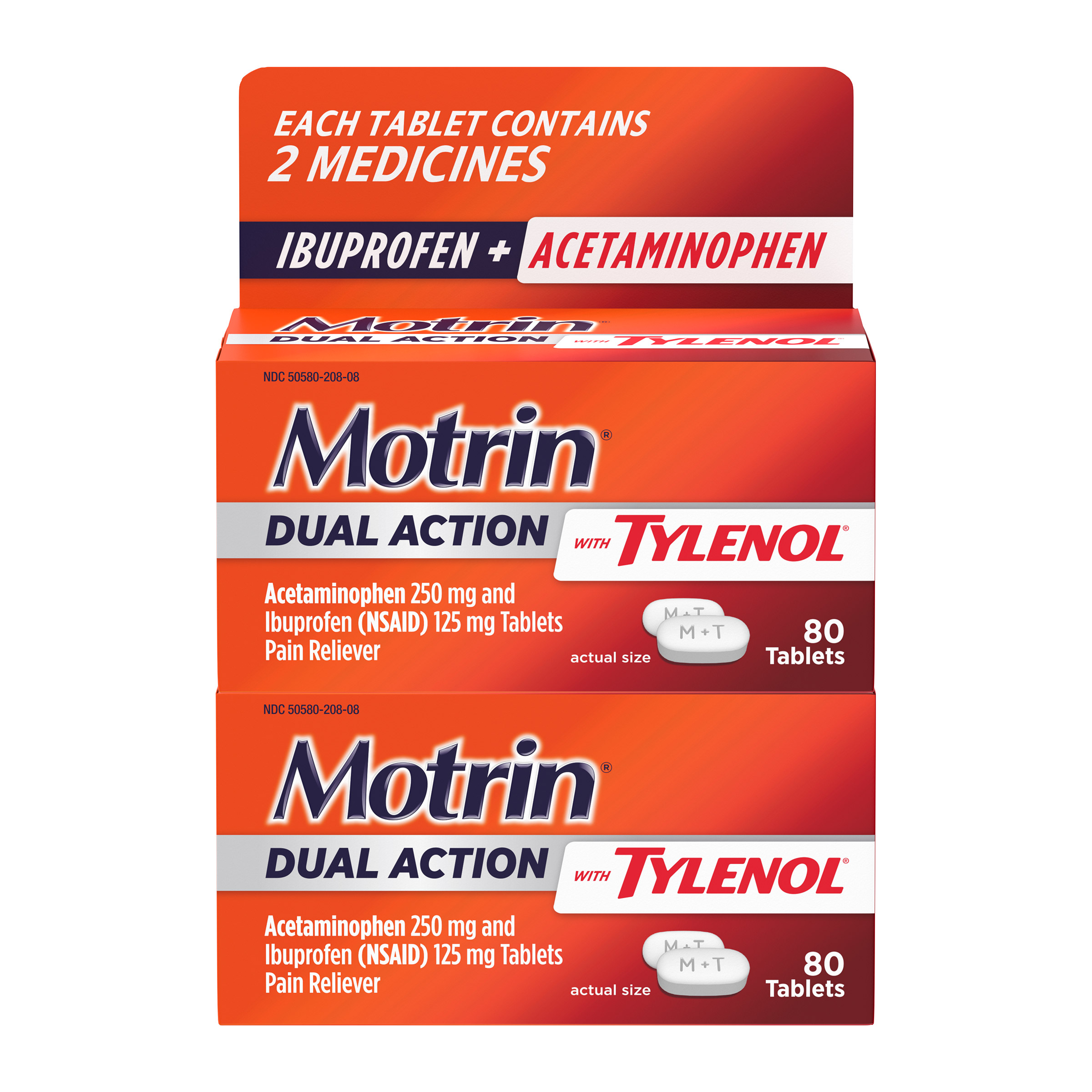Motrin Dual Action Pain Reliever with Tylenol, Ibuprofen 125 mg & Acetaminophen 250 mg, 160 Caplets