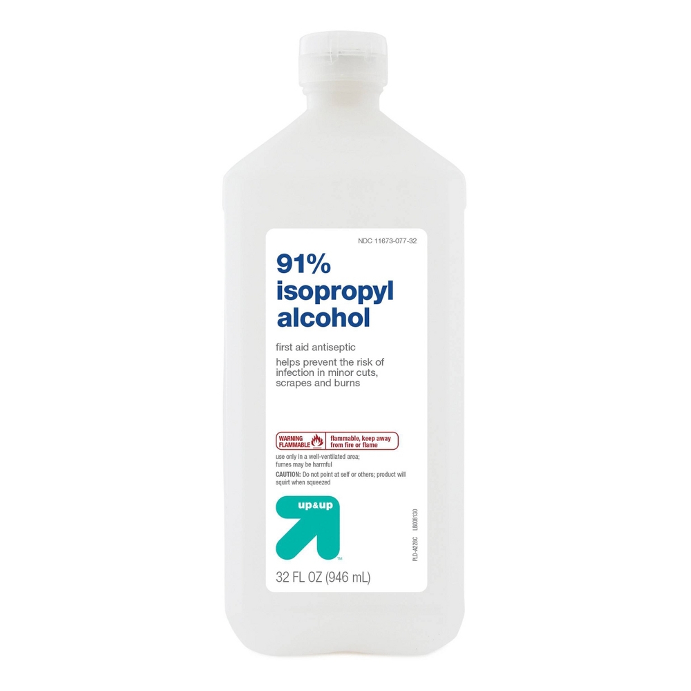 Isopropyl Alcohol 91% - 32oz from up & up™ is an ideal first aid antiseptic that helps prevent the risk of infection in minor cuts, scrapes and burns. The Isopropyl alcohol 91% treats a number of ailments that require the antiseptic properties of rubbing alcohol. Apply a small amount of this isopropanol solvent to cuts and scrapes to disinfect the area, understand the severity of the injury and prevent future infections while you treat wounds. The Isopropyl Alcohol 91% is an uncomplicated sterile formula that makes this a consistent and dependable medicine cabinet staple.