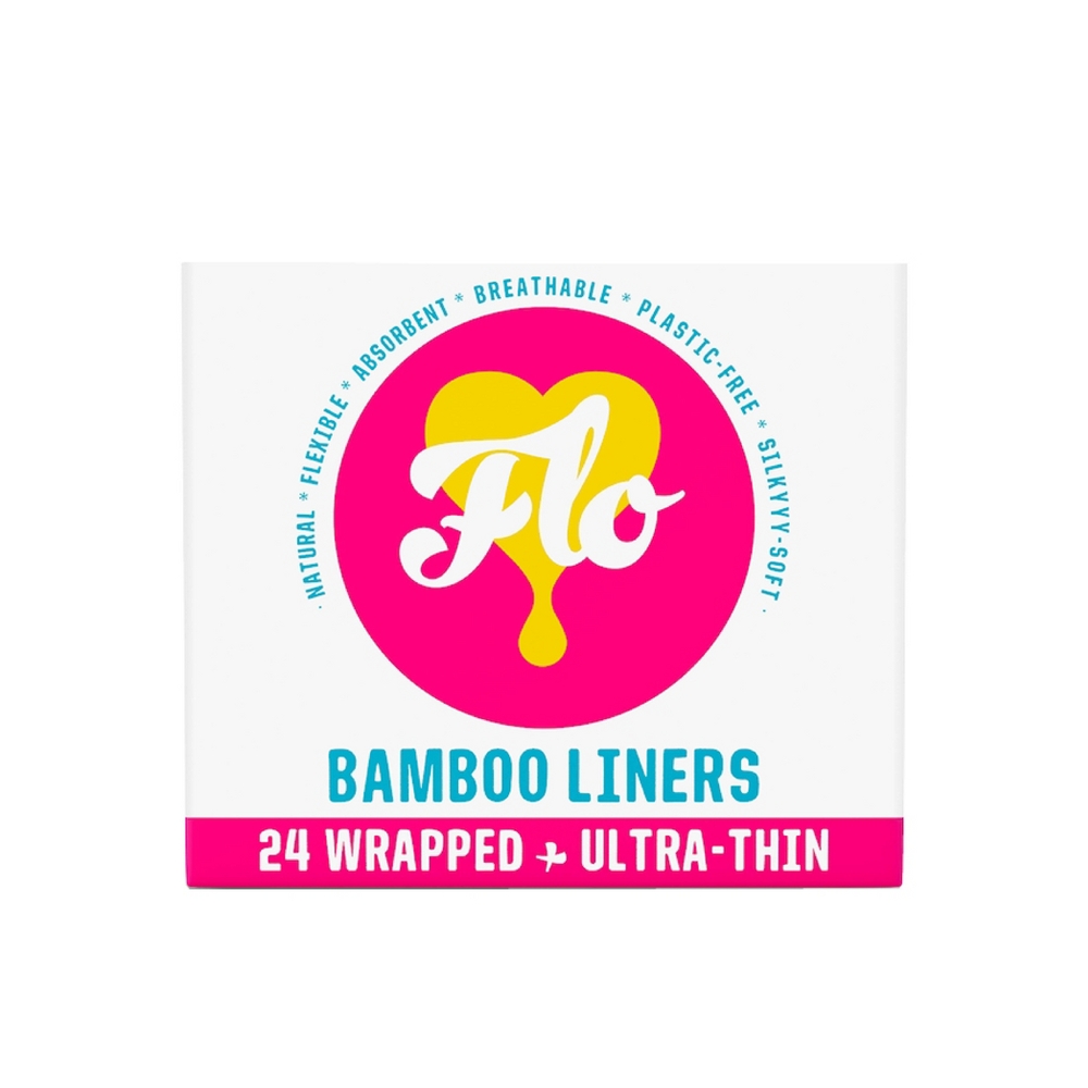Hello, gorgeous! Fancy some organic bamboo liners? Here's a cheeky pack of 24 bamboo pantyliners, ultra-thin and individually-wrapped. Plastic-free, biodegradable and breathable, these natural bamboo liners are suitable for daily use! We use 100% organic Oeko-Tex certified bamboo and non-GMO corn fibre for a silkyyyy-soft, ultra-thin and highly absorbent daily liner. FLO menstrual products are plant-based, natural and super comfy, for period protection you can rely upon. FLO liners are also individually wrapped in plastic-free, 100% biodegradable and compostable plant-based film, so you can stash them on the go and get on with being a Superbabe!