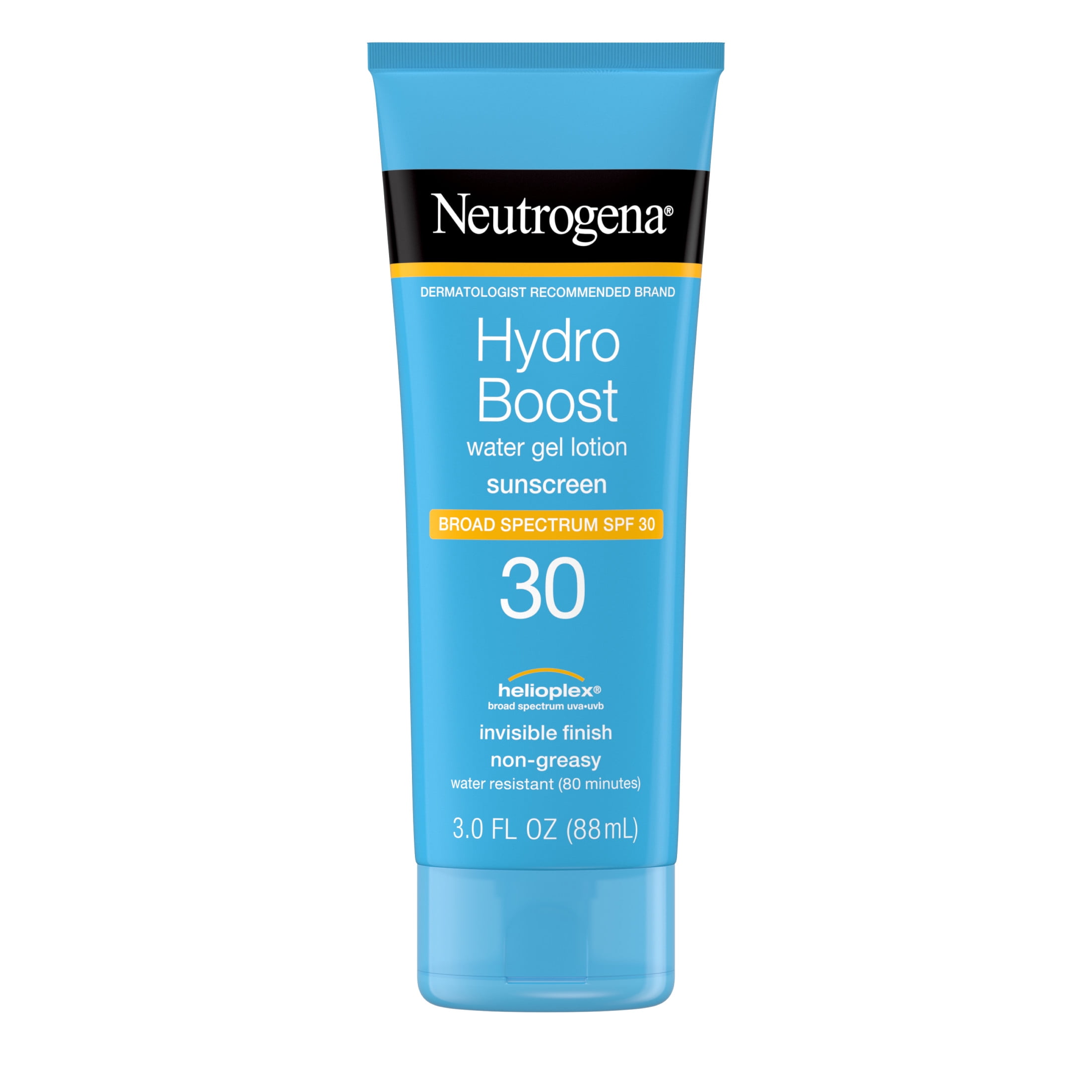 Add SPF to your new skincare routine. Neutrogena Hydro Boost Water Gel Moisturizing Sunscreen Lotion with Broad Spectrum SPF 30 delivers superior broad spectrum UVA/UVB protection and hydration with a water-light, refreshing feel. This water-resistant sunscreen lotion for face & body leaves skin looking healthy and moisturized for up to eight hours without any greasy residue or white marks. The non-greasy SPF 30 sunscreen has a light, clean feel and layers invisibly under makeup. Neutrogena Hydro Boost Water Gel Lotion Sunscreen with Broad Spectrum SPF 30 is oil-free, and non-comedogenic, which means it won't clog pores. From the #1 dermatologist recommended suncare brand, this oxybenzone-free sunscreen lotion with hyaluronic acid helps prevent sunburn when used as directed with other sun protection measures. * Tube of water-resistant Neutrogena Hydro Boost Water Gel Sunscreen Lotion with SPF 30 * Moisturizing daily sunscreen lotion provides broad spectrum UVA/UVB protection * Non-greasy SPF 30 sunscreen lotion quenches skin with vital hydration * Neutrogena Hydro Boost water gel formula moisturizes without a greasy feel * Moisturizing sunscreen lotion with hyaluronic acid hydrates for up to 8 hours * Water gel sunscreen won't leave behind white residue or streaks and layers invisibly under makeup * Daily sunscreen for face & body features an oil-free and non-comedogenic formula * Oxybenzone-free body sunscreen from the #1 dermatologist recommended suncare brand