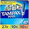 Tampax Pearl Tampons Multi Pack, with LeakGuard Braid, Regular/Super/Super Plus Absorbency, Unscented, 47 Count