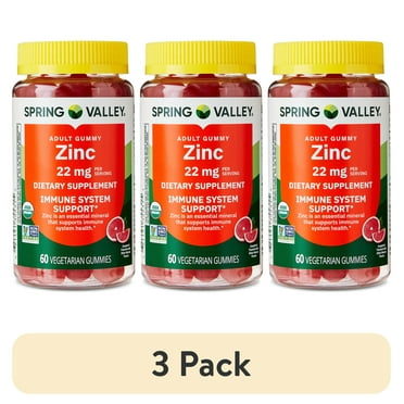 ![]() Walmart | (3 pack) Spring Valley Zinc Dietary Supplement Vegetarian Gummies for Immune System Support, Grapefruit Flavor, 22 mg, 60 Count | $26.64 | View![]() |