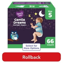 Parent's Choice Gentle Dreams Overnight Diapers help keep your baby dry and comfortable. The diapers' wetness indicators will change from yellow to blue, letting you know when it's time to change your baby's diaper. Their gentle but snug fit helps protect from leaks at the back, waist, and legs. Each diaper is made without natural latex, lotions, and perfumes so you can trust they will be gentle on your baby's skin. Choose from two stylish, fun prints in multiple sizes and bring home our Parent's Choice Gentle Dreams Overnight Diapers today. At Parent's Choice, our mission is simple: we're committed to delivering quality diapers to help keep little ones dry, comfortable, and happy. Our diapers are dermatologically tested and made without latex, fragrance, and lotions to help maintain baby's naturally healthy skin throughout the day or night. * Parent's Choice Gentle Dreams Overnight Diapers, Size 4, 78 Count (Select for More Options) * Enhanced absorbency for up to 12 hours of nighttime protection * Wetness indicator changes from yellow to blue * Made from extra-soft breathable materials for ultimate comfort * Dermatologically tested * Available in 2 stylish and fun prints